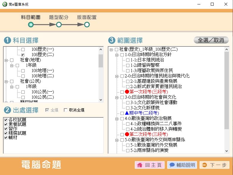 108學年下學期 國中命題光碟 南一版 社會(108課綱) 1年級 題庫光碟