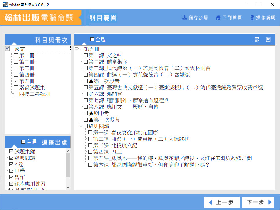 112學年上學期 技術高中命題光碟 翰林版 國文科(一、二、三、四、五、素養試題集、四技二專統測)(新108課綱,110年後入學專用) 題庫光碟