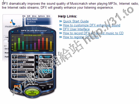 • DFX for MusicMatch JukeBox v8.350 英文正式版(音頻播放插件軟體)