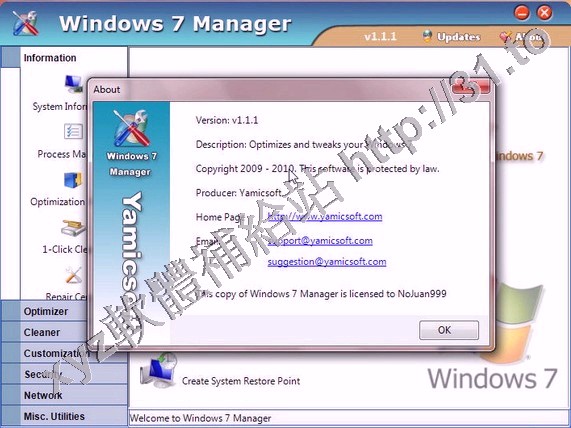 • Yamicsoft Windows 7 Manager v4.0.4 英文正式版(Widnows7 總管是優化和設置軟體)